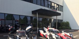 Une Porsche 919 Hybrid devant le QG de Toyota à Cologne