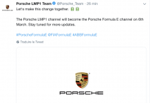 Après 5932 tweets et 142 000 abonnés, le compte Porsche LMP1 va changer de nom le 6 mars prochain pour devenir Porsche Formula E....